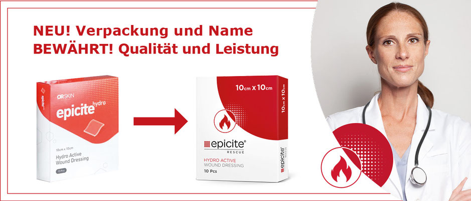 Mit dem neuen Produktnamen epicite® RESCUE rückt der Vorteil in der Akutmedizin in den Fokus – die Qualität und Herstellung des Produktes bleibt unverändert. epicite® RESCUE bietet die gleiche bewährte Zusammensetzung, Funktion sowie Produkteigenschaften.