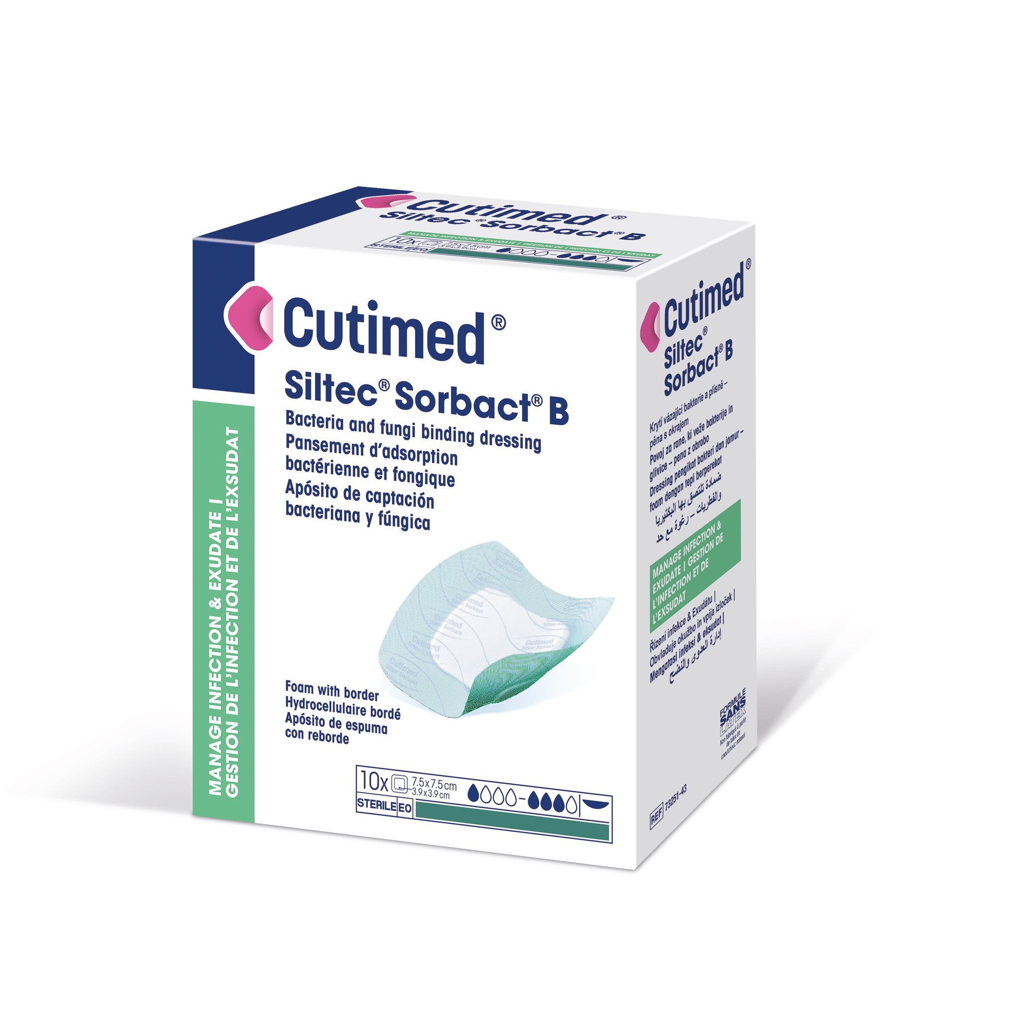 | Cutimed® Siltec® Sorbact® B | 22,5 x 22,5 cm | 5 Stk. | 7325170 |