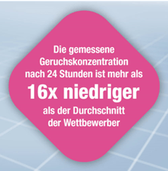 Die innovative Cutimed Sorbion Carbon+ Technologie ermöglicht Wundgeruchskontrolle und Exsudataufnahmemengen, die weit über die Leistungsstärke vieler anderer Anbieter hinausgehen: Die gemessene Geruchskonzentration nach 24 Stunden ist mehr als 16x niedriger als der Durchschnitt der Wettbewerber.