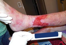 Nach 2,5 Monaten konnte eine deutliche Reduktion der Wundgröße sowie der Beläge festgestellt werden. Die Wunde exsudierte schwächer, die Blutungen wurden gestoppt und die Patientin empfand geringere Schmerzen. Die Keimbesiedelung reduzierte sich und der Geruch war beseitigt. Es bildete sich neues Epithel- und Granulationsgewebe.