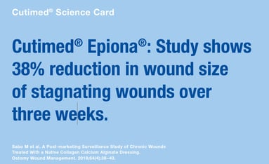 Cutimed® Epiona® ist ein aus 90 % Kollagen und 10 % Kalziumalginat bestehender, resorbierbarer Wundverband. Diese gefriergetrocknete Matrix passt sich aufgrund seiner Formbarkeit und Weichheit, sehr gut an die Wunde an und ist frei von chemischen Vernetzungsmitteln.